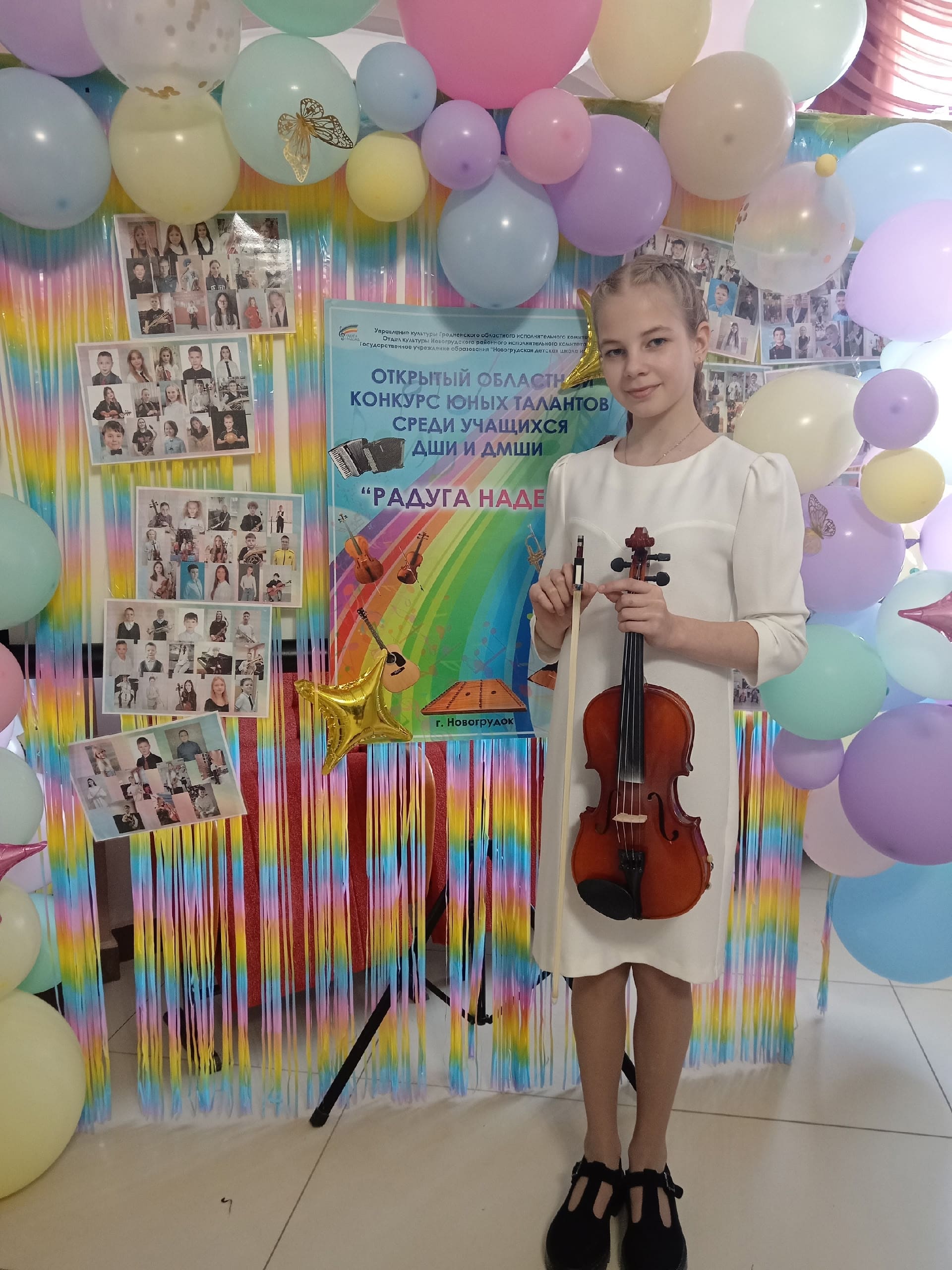 10 апреля 2026 года юные скрипачи филиала № 1 аг. Гезгалы приняли участие в VIII открытом областном конкурсе юных талантов среди учащихся ДШИ и ДМШИ «Радуга надежд», который состоялся в ГУО «Новогрудская детская школа искусств». В конкурсе приняли участие 349 юных талантов из Минской, Гродненской, Брестской, Витебской областей и г.Минска. Поздравляем с успешным выступлением в конкурсе: образцовый ансамбль скрипачей «Зорачкі» (лауреат 3 степени), Кашко Анастасию (дипломант 1 степени), Майсак Дарью (дипломант 3 степени), Санюк Нелли (грамота за успешное выступление), учителя Кашко Елену Игоревну и концертмейстера Болбат Анну Витальевну. Желаем Вам новых творческих успехов и достижений!