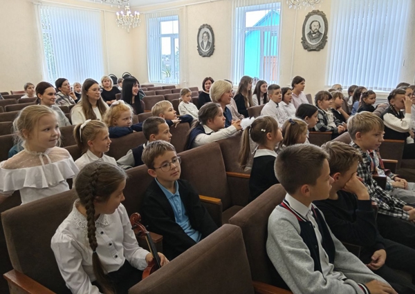 1 сентября — день начала занятий, новых добрых встреч с миром знаний. Ведущие мероприятия Виктория Беняш и Людмила Романова поздравили юных музыкантов, художников и родителей с Днём знаний. Аплодисментами зал встречал первоклассников. С приветственным словом к присутствующим обратилась директор школы Алла Николаевна Борисенко, которая пожелала Всем успехов в новом учебном году. Алла Николаевна представила молодых учителей, которые начинают свой педагогический путь в Дятловской детской школе искусств. Это учитель по классу баяна Лаборевич Ангелина Витальевна и учитель по классу скрипки Болбат Диана Витальевна Яркие музыкальные номера подарили присутствующим молодые учителя школы, вокальный и инструментальные ансамбли.